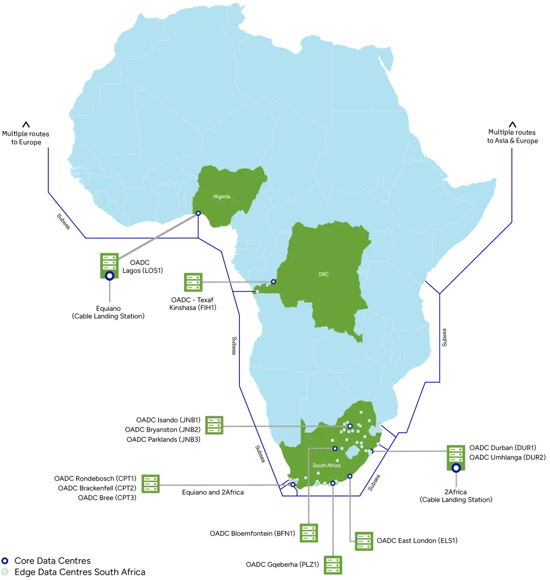 OADC is supporting and accelerating Africa's digital transformation by constructing and operating a pan-african network of data centre facilities, fully connected into africa's largest network infrastucture.